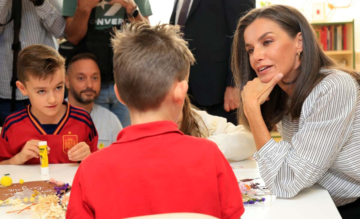 El momento central de la visita fue la toma de una fotografía de grupo junto a una placa conmemorativa, celebrando el inicio del curso. Posteriormente, Doña Letizia continuó su recorrido visitando otras instalaciones del colegio, como el aula de autorregulación emocional, el aula de Educación Infantil y el patio renaturalizado, donde observó a los alumnos participando en diversas actividades al aire libre.