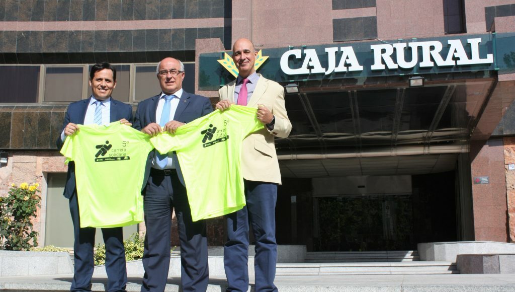 El gerente de la Fundación, Vicente Muñoz, entregó la camiseta de la Carrera al presidente de UTECO, Encarnación Majano, y su gerente, José María Manzanilla, en la sede central de Caja Rural Castilla-La Mancha, en la calle Méjico de Toledo, donde tendrá su salida y llegada la Carrera.