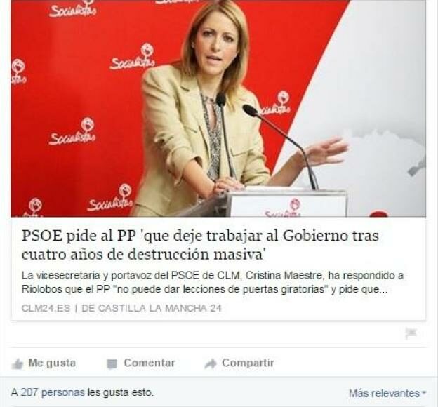 El alcalde de la localidad conquense de Villares del Saz, José Luis Valladolid Lucas,publicó a través de su cuenta personal en la red social Facebook un comentario a una noticia de un medio de comunicación de carácter regional llama «puta barata podemita» a la portavoz del PSOE en Castilla-La Mancha, Cristina Maestre.