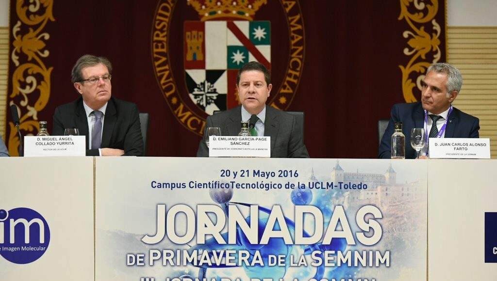 Así lo ha apuntado durante la inauguración de la Jornada de Primavera de la Sociedad Española de Medicina Nuclear e Imagen Molecular (SEMNIM) y la III Jornada de la Sociedad Castellano-manchega de Medicina Nuclear (SCMMN), celebrada en el Campus Científico Tecnológico de la Fábrica de Armas y en la que también han participado el consejero de Sanidad, Jesús Fernández; el rector de la UCLM, Miguel Ángel Collado; el presidente de la Sociedad Castellano-Manchega de Medicina Nuclear, Ángel Soriano, y el presidente de la Sociedad Española de Medicina Nuclear e Imagen Molecular, Juan Carlos Alonso.