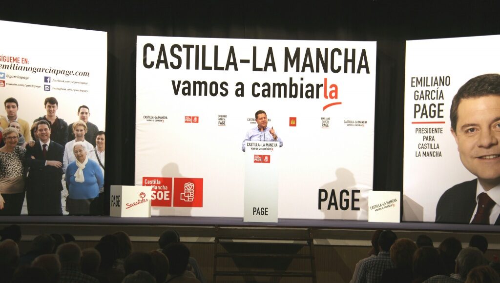 El secretario regional del PSOE y candidato a la Presidencia de Castilla-La Mancha, Emiliano García-Page, se ha preguntado «cómo puede hablar Cospedal de bajar los impuestos cuando la mitad de su gobierno los paga fuera de nuestra región».