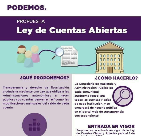 La Ley de Cuentas Abiertas ha sido presentada en Valencia por la secretaria de Acción Institucional de Podemos, Auxiliadora Honorato, en un acto junto a los portavoces de los siete grupos parlamentarios regionales de la formación. “No sólo queremos acabar con la impunidad y castigar a los corruptos, queremos prevenir la corrupción, impedir que vuelva a nacer. Si cualquier ciudadano puede ver cualquier cuenta de la administración y en qué se gasta hasta el último euro del dinero público evitaríamos grandes casos de corrupción como los que ha visto este país durante los últimos años”, ha explicado Honorato en rueda de prensa.