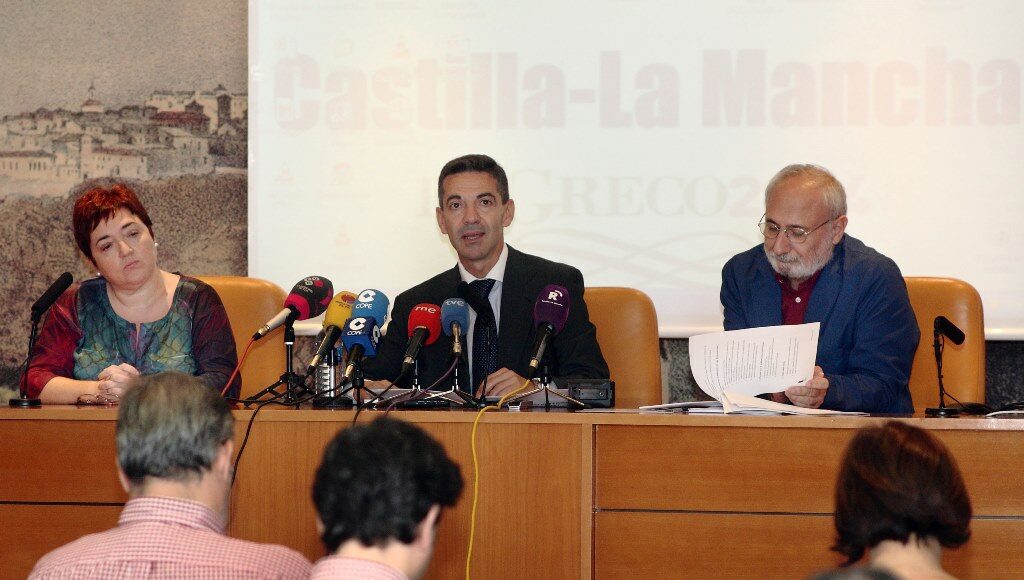 Toledo, 17-10-2014.- El director general de Cultura, Javier Morales durante la presentación en rueda de prensa del Plan Estratégico 2014-2017 de la Biblioteca Regional, acompañado por el director, Juan Sánchez y la subdirectora, Carmen Morales. (Foto: Álvaro Ruiz // JCCM)