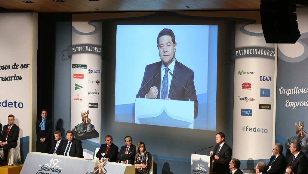 Así lo ha avanzado el presidente del Ejecutivo autonómico durante la gala de entrega de los XIX Galardones Empresariales de la patronal toledana FEDETO que se ha celebrado este sábado en la capital regional y en la que también han participado, entre otros, el presidente de la Federación de Empresarios Toledana, Ángel Nicolás; el presidente de las Cortes de Castilla-La Mancha, Jesús Fernández Vaquero; el presidente de la Diputación de Toledo, Álvaro Gutiérrez; el delegado del Gobierno en la Región, José Julián Gregorio; y la alcaldesa de la capital, Milagros Tolón.