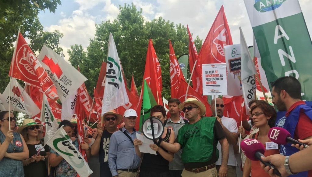 Acompañado del responsable provincial del sindicato, Enrique Cardenal, Ranz ha criticado que los docentes interinos de Castilla-La Mancha serán los únicos que no perciban sueldo en los meses de verano, «sufriendo una medida injusta no tanto en lo económico como en lo administrativo, que hace mantener agravios comparativos con respeto a otras trabajadores de otras regiones».