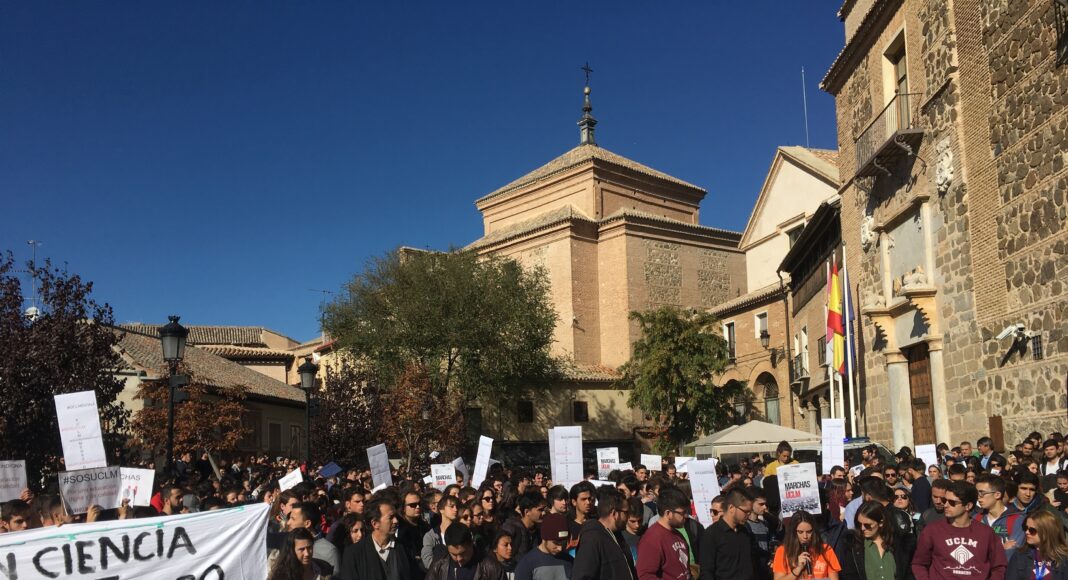 Cerca de 2.600 estudiantes de la Universidad de Castilla-La Mancha (UCLM) –4.050 según los cálculos de la Delegación del Gobierno– se han manifestado este martes en los cuatro campus universitarios de las capitales de provincia –Toledo, Ciudad Real, Cuenca y Albacete– para pedir «más diálogo» entre la Institución académica y el Gobierno regional de cara a abordar un aumento de la financiación para la primera que ocurra antes del próximo 24 de noviembre, cuando termina el plazo para presentar enmiendas a los presupuestos.