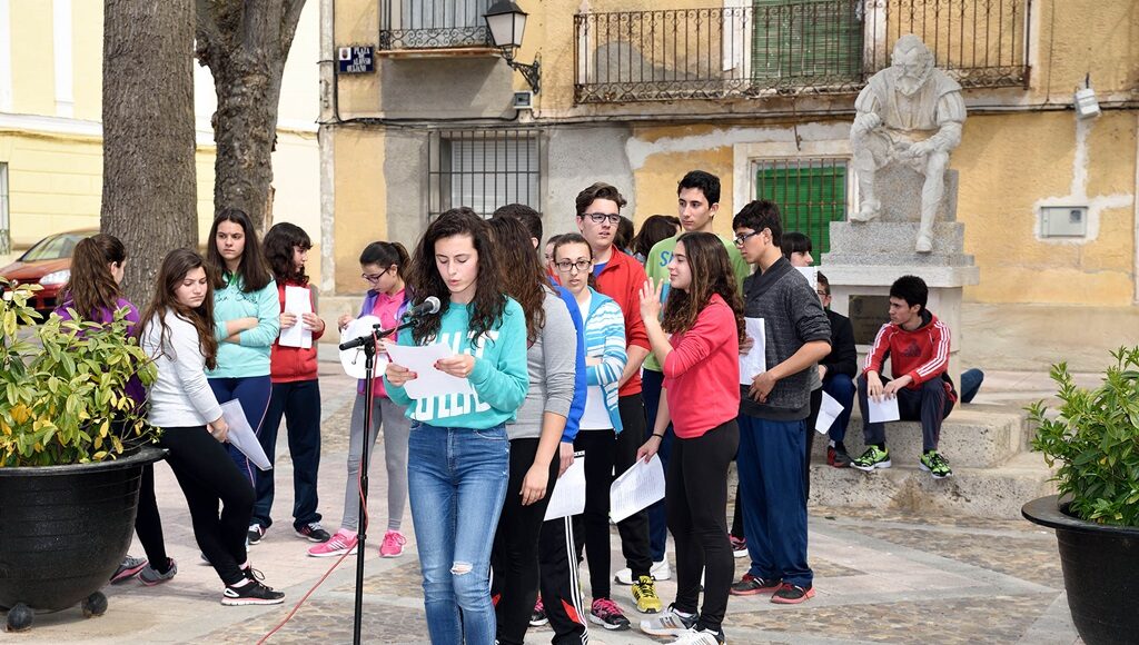 Alumnos del IES “Vicente Cano” y del CEIP Ntra. Sra. de Peñarroya han homenajeado este jueves 23 a Miguel de Cervantes, cuando se cumplen 399 años de su fallecimiento, en un acto organizado por la Asociación Cultural “Los Académicos de la Argamasilla” en colaboración con el Ayuntamiento de Argamasilla de Alba.
