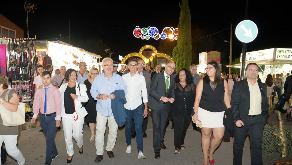Finalizadas las intervenciones, pregoneros, autoridades, invitados y público se desplazaron, tras la música de la Agrupación Musical “Maestro Martín Díaz”, desde el Ayuntamiento hasta el recinto ferial, donde se procedió al corte de cinta y encendido del arco luminoso de entrada al ferial y posteriormente al encendido de la denominada “pólvora” que anuncia a los vecinos el inicio de la Feria y Fiestas 2017.