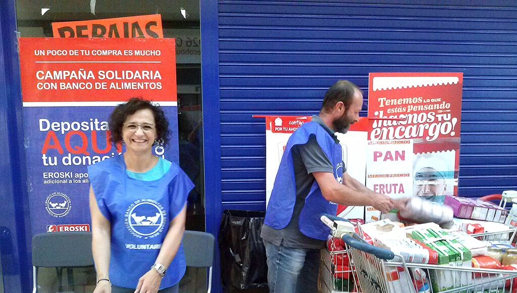 Durante los pasados días 6 y 7 de junio, voluntarios de esta organización se turnaron mañana y tarde para recabar la colaboración de los ciudadanos que acudían a Eroski para realizar sus compras, mediante la aportación de alimentos básicos, como cereales, legumbres, pasta y, especialmente, leche y galletas para los niños de familias que atraviesan una mala situación económica a causa de la crisis.