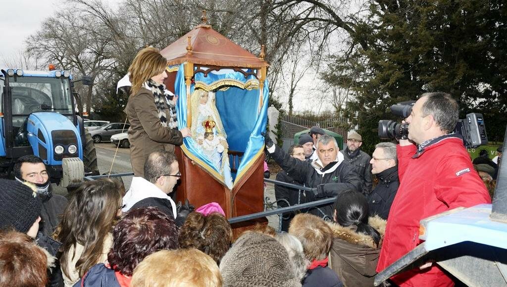 Como es tradicional, superadas las 12.30 horas, la carroza que lleva la imagen y la numerosa comitiva de vehículos que la acompañaban, hacían una breve parada para que los argamasilleros pudieran ver la imagen de su patrona, al frente de todos ellos el alcalde, Pedro Ángel Jiménez, acompañado del párroco local, Ángel Almansa, y el hermano mayor de la Virgen, Cristóbal Jiménez.
