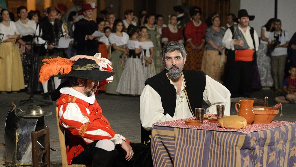 No faltaron a la cita, los creadores: Alonso Fernández de Avellaneda, por Javier Fernández de Carlos; y Miguel de Cervantes, por Obdulio Hilario Torres; cada uno a un lado de la plaza, separados simbólicamente como lo estuvieron hace cuatrocientos años, daban paso a las representaciones de sus personajes.