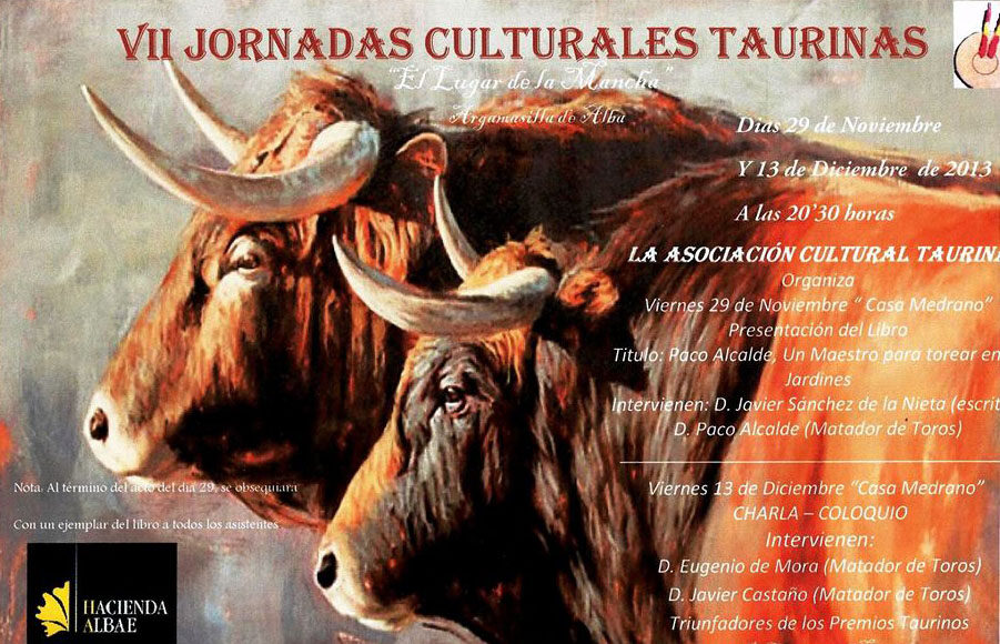 Las Jornadas Culturales Taurinas “El Lugar de la Mancha” de Argamasilla de Alba, organizadas por la Asociación Cultural Taurina de la localidad, alcanzan su séptima edición el próximo viernes 29 de noviembre con la primera jornada de las dos previstas para esta edición, la segunda tendrá lugar el 13 de diciembre, ambas a las 20.30 horas en el Centro Cultural “Casa de Medrano”.