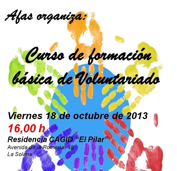 AFAS (Asociación de Familiares y Amigos de Personas con Discapacidad) va a organizar el próximo viernes 18 de octubre en la Residencia de La Solana CADIG EL PILAR en la Avenida de la Romería, 48, el primer curso de formación de voluntariado en La Solana.