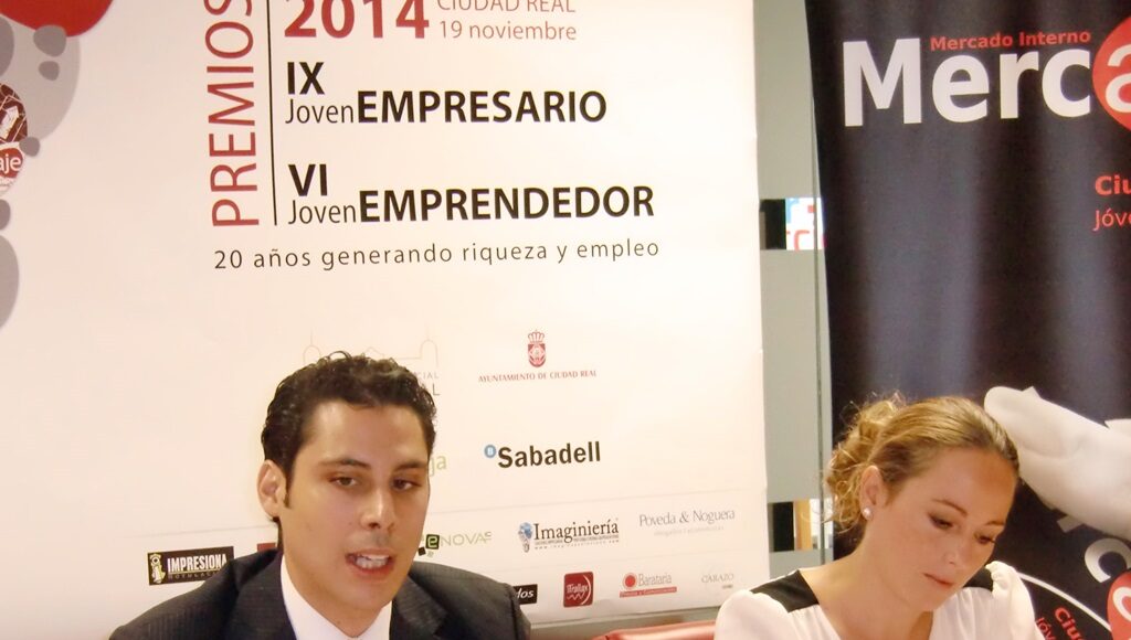 El presidente de  la Asociación de Jóvenes Empresarios (AJE) de Ciudad Real, José Manuel Poveda y la vocal de su directiva Cristina Tirado, han  presentado hoy el IX Premio Joven Empresario y VI Premio Emprendedor 2014, que acaba de ser convocado (www.ajecr.es) y cuyo acto de entrega será el 19 de noviembre en la capital provincial, con asistencia de la presidenta de Castilla-La Mancha, Mª Dolores de Cospedal, en un día muy especial para AJE Ciudad Real, que celebrará su 20 Aniversario,