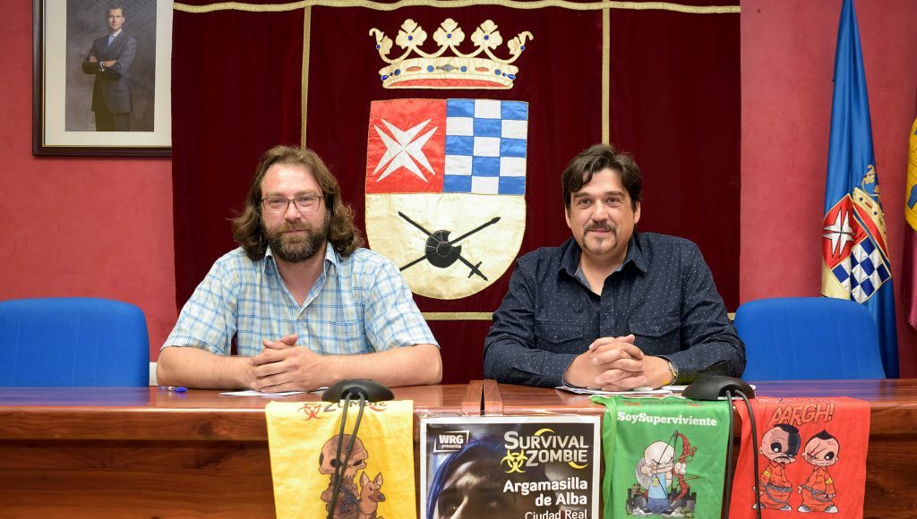 El concejal de Juventud, Enrique Peces, y el representante de WRG (World Real Games) De Acero Producciones, Luis Eduardo González, han presentado este lunes en el Ayuntamiento de Argamasilla de Alba la segunda edición del Survival Zombie, que se celebrará el 20 de mayo (de 23.00 a 06.00 h. del domingo) en la localidad.