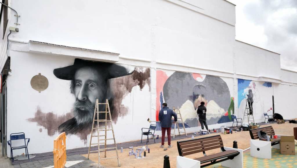A lo largo del pasado sábado 27 los tres grafiteros ganadores del VII Certamen Nacional de Graffiti «Las Aventuras del Quijote» de Argamasilla de Alba, celebrado en el mes de noviembre en la última jornada del XIII Coloquio Internacional de la Asociación de Cervantistas, trasladaron sus obras premiadas a las blanqueadas paredes del aparcamiento situado frente al Centro Cultural “Casa de Medrano”.