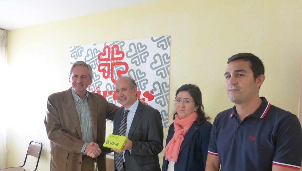 En el acto de reconocimiento de esta ayuda, estuvo presente D. Alberto Fernández Gómez del Moral, director de Bankia en Ciudad Real y por parte de Cáritas Diocesana de Ciudad Real, el director Fermín Gassol Peco, la responsable de Administración Isabel Oviedo Mendiola y el coordinador del Programa de Droga, David Patiño Alite.