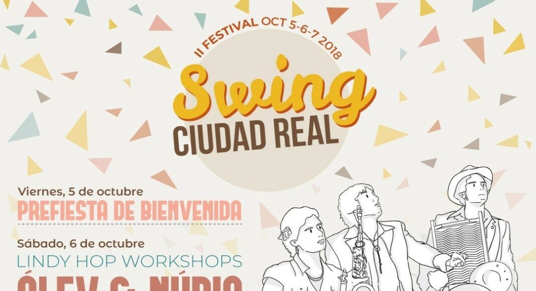 El primer fin de semana de octubre es la fecha elegida para la celebración del II Festival Swing Ciudad Real. Tras una primera edición, en formato Exchange, que contó en 2017 con más de 150 personas venidas de diferentes puntos del país, con los profesores Carla Stinus y Carlos Cayuela y las bandas Basement Band y Old Dixieland Band, esta edición tendrá un formato de gran Festival de Swing.