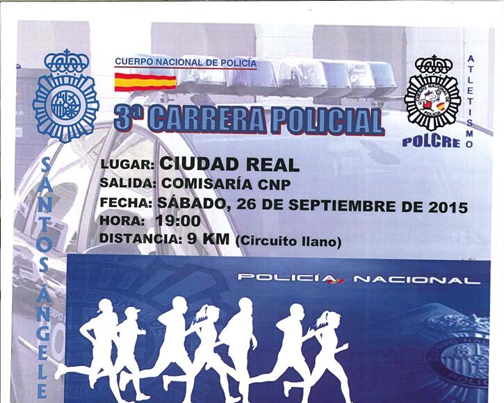 La comisaría provincial del Cuerpo Nacional de Policía de Ciudad Real y el Club de Atletismo Polcre se unen otro año más para llevar a cabo la Carrera Policial Santos Ángeles Custodios. El próximo sábado 26 de septiembre a las 19.00 horas, junto a la comisaría provincial del Cuerpo Nacional de Policía, se efectuará la salida y llegada de los participantes.