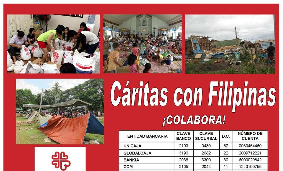 Cáritas Diocesana de Ciudad Real se une a la campaña en solidaridad con Filipinas, habilitando números de cuenta para aquellas personas quieran realizar sus aportaciones.