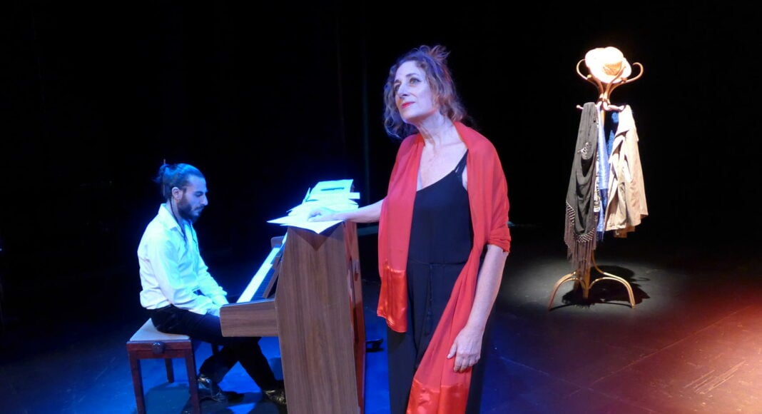 En el montaje se ha estructurado una primera escena en la que se da a entender al público que ella está muerta y, aunque está en escena, se parte de ese concepto para que el espectador lo comprenda. El autor, por supuesto, no la ve. Ella utiliza al pianista como si fuera el amante e interactúa con él. Mientras, el autor está escribiendo una carta para recuperarla y la obra gira en torno a la escritura de esta carta, en verso, para ir rescatando todos esos objetos que le recuerdan a ella.
