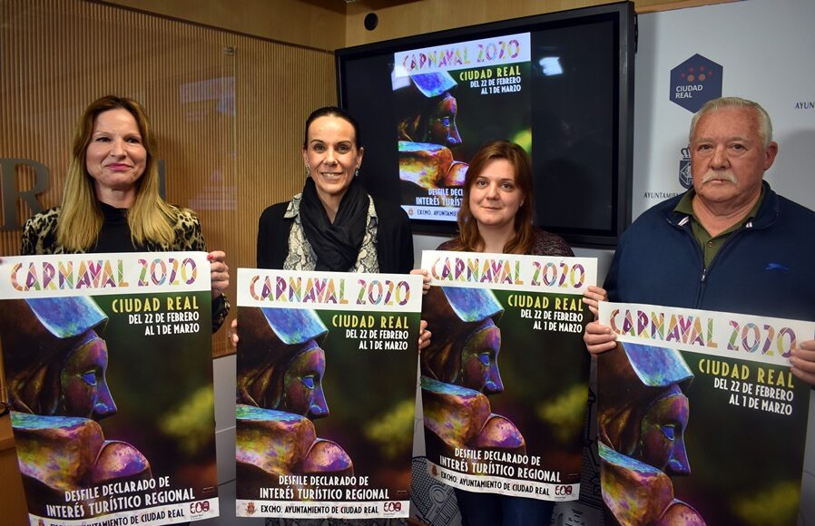 La concejal de Festejos y Tradiciones Populares, Eva María Masías, y la presidenta de la Federación de Peñas ‘Alarcos’, Frasi López, han presentado este martes la programación de estas fiestas, cuyo desfile del Domingo de Piñata está declarado de Interés Turístico Regional, acompañadas de la autora del cartel de este año, Toñi Martín-Albo.