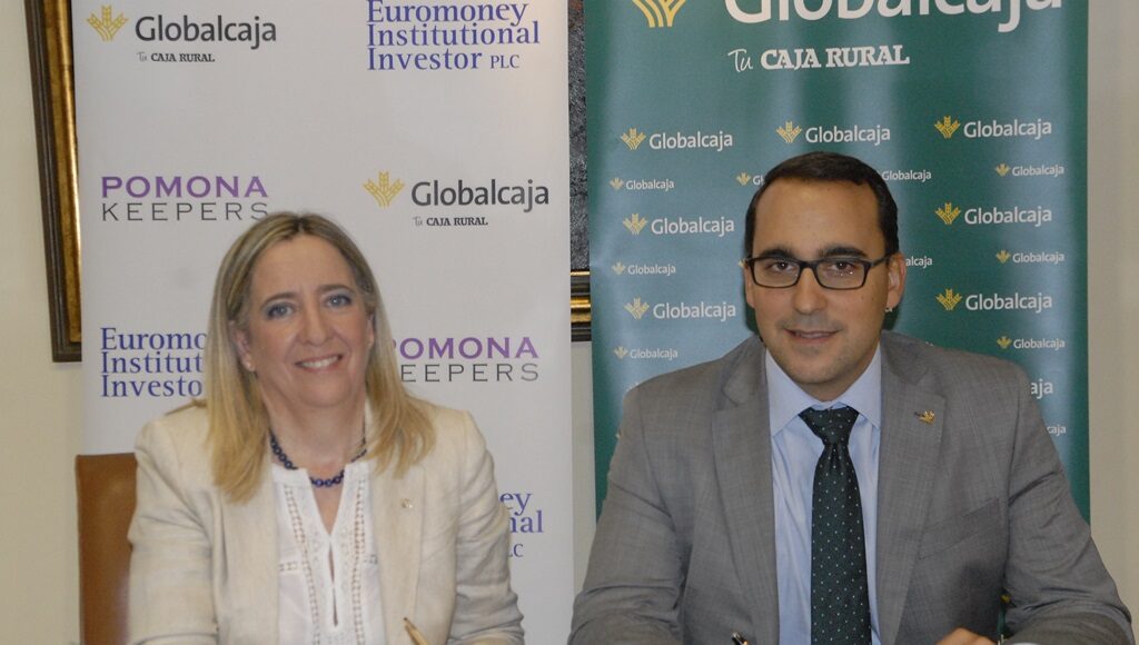 Pedro Palacios, director general de Globalcaja, y Otilia Romero Condés, directora general de la World Bulk Wine Exhibition, han suscrito un convenio de colaboración, que supone renovar el apoyo de la entidad, para la celebración de una nueva edición de dicha feria, que tendrá lugar los días 23 y 24 de noviembre en Amsterdam.