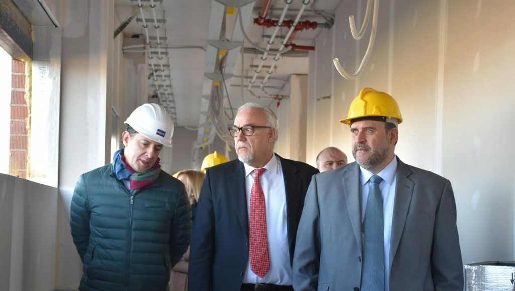En cuanto al estado de las obras, actualmente ha concluido el cerramiento perimetral de fachadas y cubiertas, los pavimentos de terrazo, la red de saneamiento y las particiones, estando en ejecución el tendido de instalaciones de fontanería, electricidad, calefacción, incendios, seguridad, entre otras.