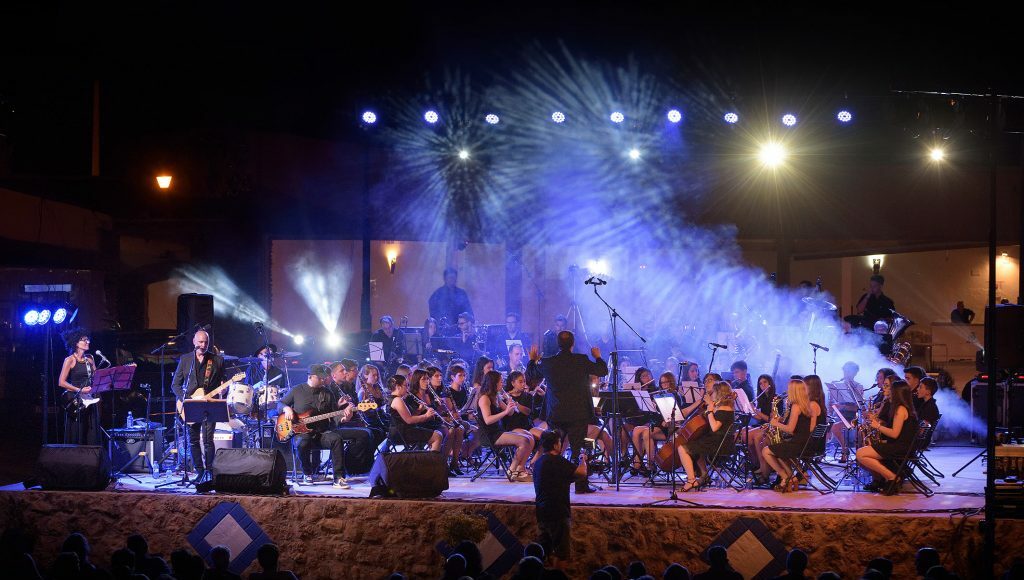 La Agrupación Musical “Maestro Martín Díaz” de Argamasilla de Alba y el grupo vasco ‘A santo de qué’ ofrecieron este sábado en el Auditorio de Verano el concierto ‘Lo mejor de los 80 y 90’, un tributo a la música de estos años.