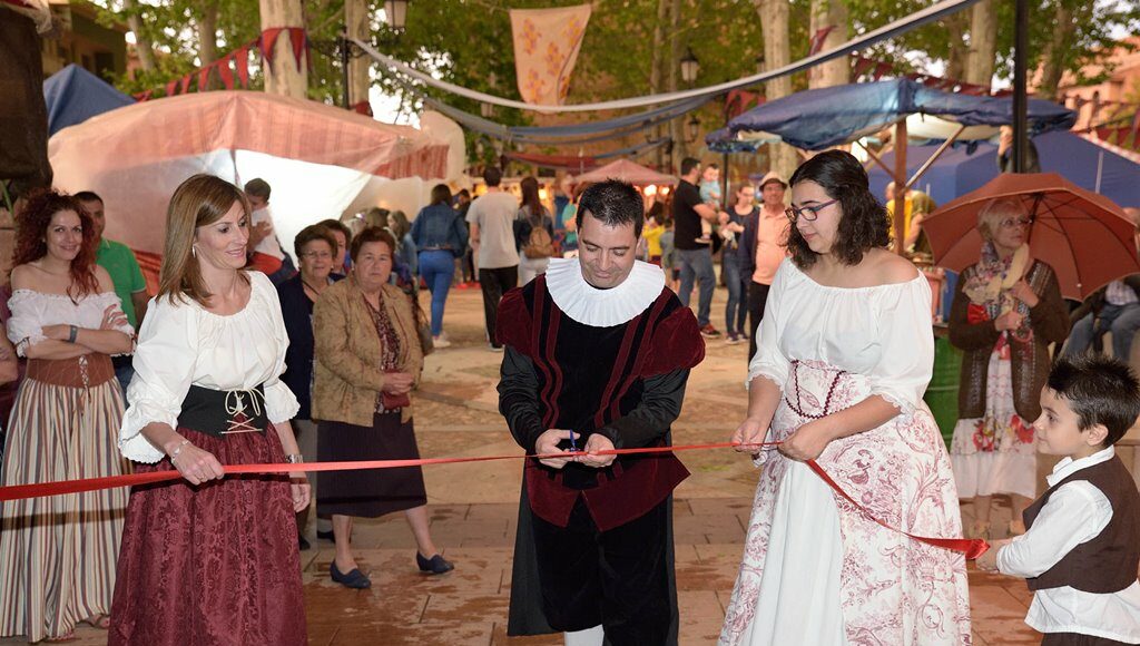 A las 21.00 h. el concejal de Cultura, José Antonio Navarro, acompañado de las concejalas de Turismo y Cultura, Elia Rubio y Alba Hilario, respectivamente, ataviados para la ocasión con una indumentaria del estilo del siglo XVI y XVII, cortaba la cinta con la que simbólicamente queda abierto al disfrute de los vecinos y visitantes esta nueva edición.