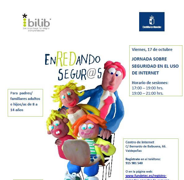 La localidad ciudadrealeña de Valdepeñas acogerá el próximo viernes 17 de octubre una Jornada sobre seguridad TIC para familias que pretende concienciar a padres e hijos de la importancia de practicar un uso adecuado de Internet y las redes sociales. La iniciativa forma parte del proyecto EnREDando segur@s, impulsado por la Consejería de Fomento de Castilla-La Mancha a través del Centro de Apoyo Tecnológico a Emprendedores (bilib), y que cuenta con la colaboración de Fundetec.