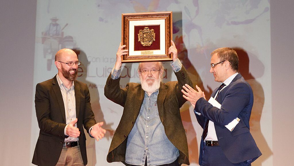 Para este primer reconocimiento “Ingenioso Hidalgo de la Mancha, un premio a la trayectoria de personalidades del mundo creativo con origen en Castilla la Mancha, o bien que hayan desarrollado su carrera y actividad dentro de esta tierra, o bien llevando el nombre de La Mancha más allá de las fronteras regionales y nacionales”, indicaba el concejal de Cultura, José Antonio Navarro, que continuó diciendo, “no se nos ocurre un destinatario mejor, que el caballero andante del cine español, D. José Luis Cuerda Martínez”, a quien hicieron entrega del premio el alcalde de Argamasilla de Alba, Pedro Ángel Jiménez, y el viceconsejero de Cultura, Jesús Carrascosa.