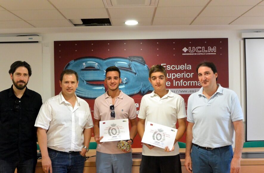 La Escuela Superior de Informática del Campus de Ciudad Real ha premiado el talento, ingenio y capacidad de desarrollo de aplicaciones para sistemas operativos Android de los alumnos de Secundaria. Sergio Muñoz de Morales y Javier Loro, ambos alumnos del IES Hernán Pérez del Pulgar, son los ganadores del II Concurso App Inventor, cuyo premio han recibido de manos del director de la Escuela, Eduardo Fernández-Medina.