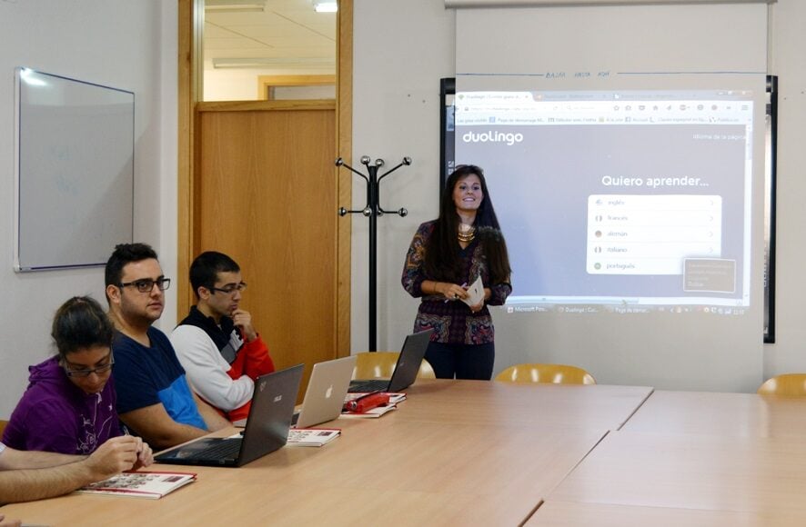 Estudiantes, futuros docentes y profesores en activo participan en el curso de verano Aprendizaje de idiomas y tecnología, que la Universidad de Castilla-La Mancha (UCLM) celebra en la Facultad de Letras de Ciudad Real. Dirigido por los profesores Rafael Cruz y Alicia Fernández, el programa pretende familiarizar a los participantes con herramientas tecnológicas que pueden favorecer la enseñanza de otras lenguas, entre las que se encuentran Duolingo, un sitio web destinado al aprendizaje gratuito de idiomas que también sirve para traducir textos. El servicio está diseñado de tal forma que el usuario, según va avanzando en su aprendizaje, ayuda a traducir páginas web y otros documentos. En la actualidad Duolingo ofrece cursos de español, inglés, francés, alemán, portugués, italiano, neerlandés, danés, sueco, noruego, turco y esperanto (desde inglés).