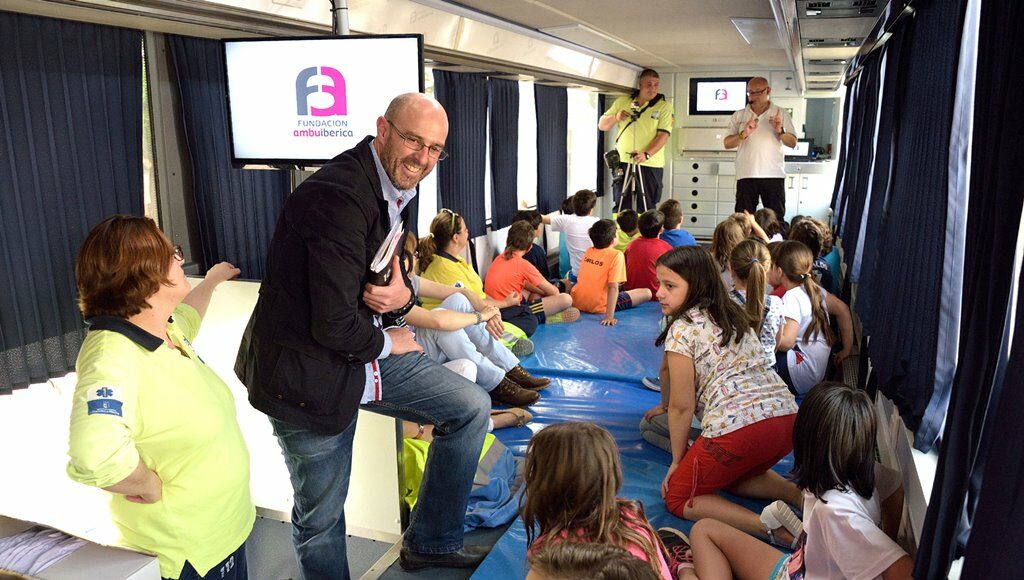 Para alcanzar los conocimientos en esta materia, profesionales y técnicos de emergencias sanitarias del Grupo Ambuibérica están impartiendo teóricamente nociones básicas en primeros auxilios y reanimación cardiopulmonar (RCP) en el Autobús-Aula de la fundación, estacionado en la Plaza Alonso Quijano, y sesiones prácticas en la Glorieta.