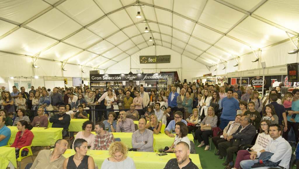 El final de la jornada lo ha cocinado Álvaro Madrid. El público, con todos los espacios de la carpa ocupados, ha aprendido la técnica para unir crestas de gallo con lengua de ternera. Para involucrar a la Feria en la época del año que vivimos, el chef ha deleitado a los comensales con un caldo otoñal de caza, engalanado con un trampantojo de caviar.