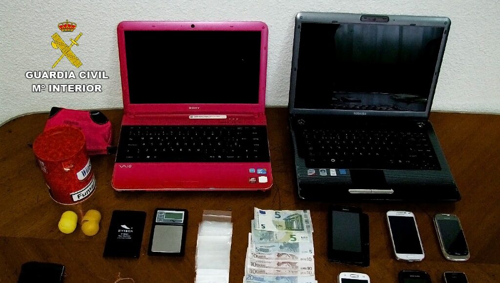 Como consecuencia de todo ello, entre los días 15 y 16 de enero, efectivos del Equipo de Policía Judicial de la Guardia Civil de Puertollano y del Área de Investigación de la Guardia Civil de Almadén, junto con personal del Servicio Cinológico de la Guardia Civil, realizaron tres registros domiciliarios, procediéndose a la incautación de 30 dosis de cocaína en roca y una bolsa conteniendo 3 gramos de marihuana, una balanza de precisión, documentación con contabilidad, dos ordenadores portátiles, 5 teléfonos móviles, 235 euros dinero en efectivo así como material para la preparación y distribución de sustancias estupefacientes.