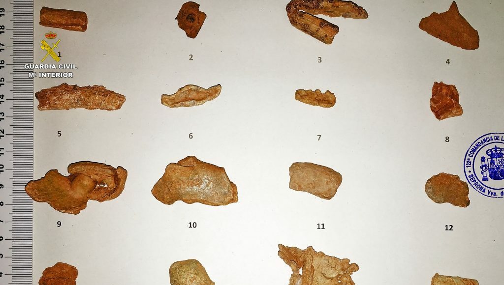 Tras identificar a estas personas y comprobar los daños perpetrados en el yacimiento arqueológico se les intervinieron dieciséis piezas metálicas, que fueron entregadas en la Delegación Provincial de Educación, Cultura y Deportes.