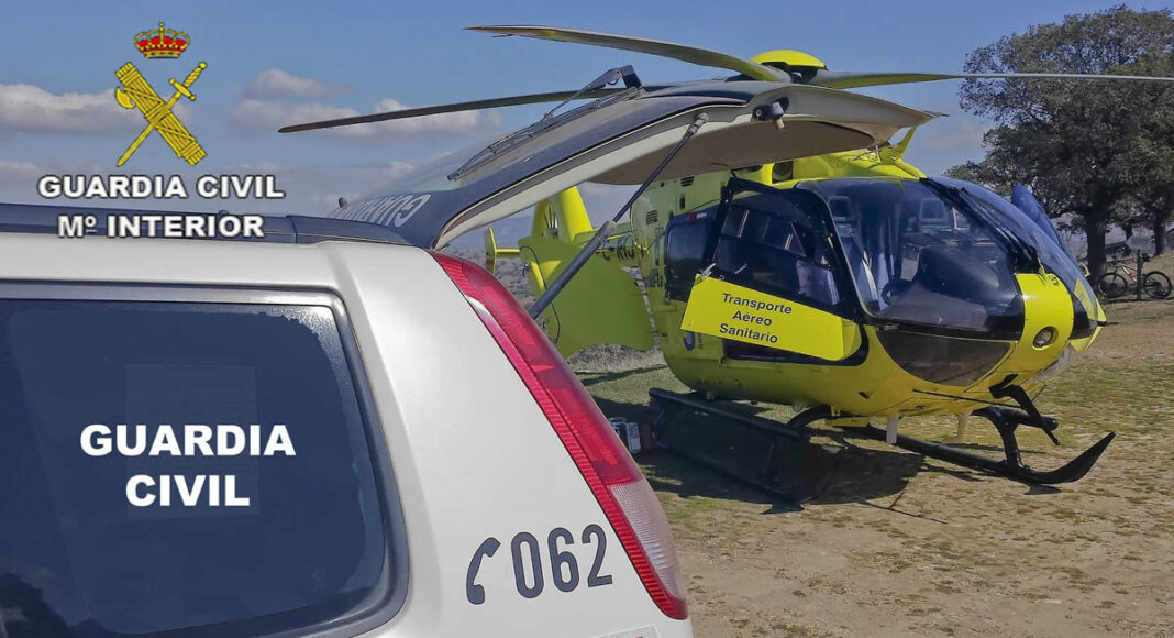 Durante el trayecto y a falta de unos dos kilómetros para llegar al lugar del accidente, los efectivos de la Guardia Civil observaron el helicóptero de los servicios médicos dando vueltas sin poder aterrizar, debido a la orografía del terreno, por lo que le indicaron una zona donde poder hacerlo.