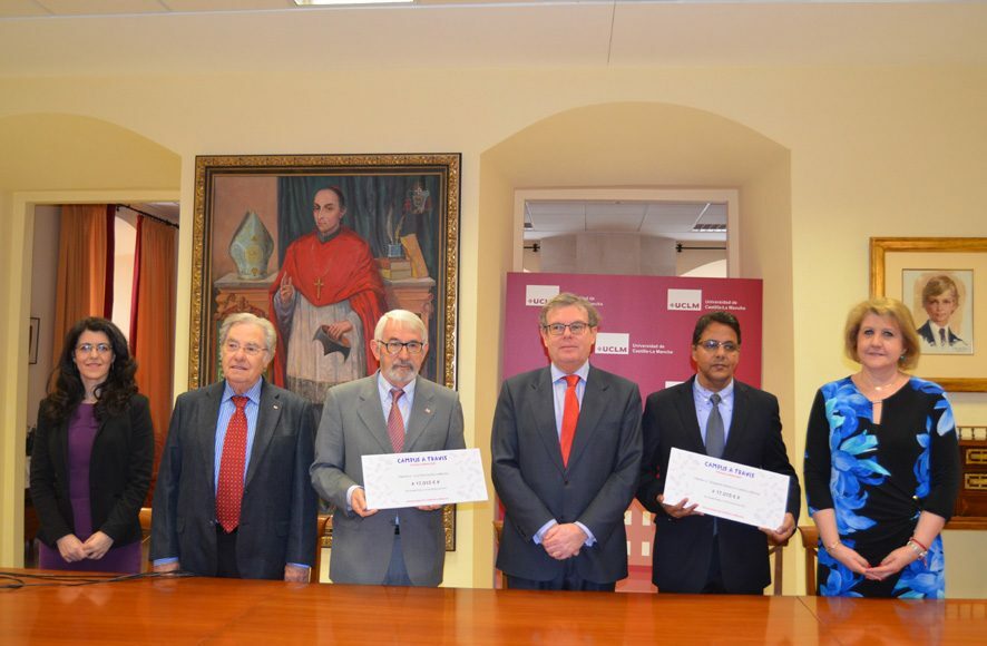 El rector de la Universidad de Castilla-La Mancha (UCLM), Miguel Ángel Collado, ha hecho entrega hoy a Cruz Roja Española y a la Delegación Saharaui en la región de un cheque por importe de 17.015 euros a cada una de ellas. La donación atiende al compromiso de la Universidad regional de aportar diez euros por participante en la carrera Campus a Través organizada y celebrada por la institución académica el pasado 26 de octubre en todos sus campus y sedes universitarias.