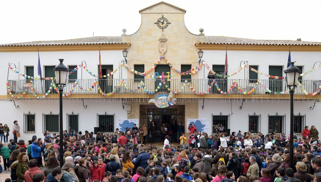 A continuación, los alumnos y alumnas han recitado conocidas frases sobre la Paz y se han liberado varias palomas, finalizando el acto bailando y cantando al unísono el tema ‘La paz se construye cada día’ de Requetecorcheas.