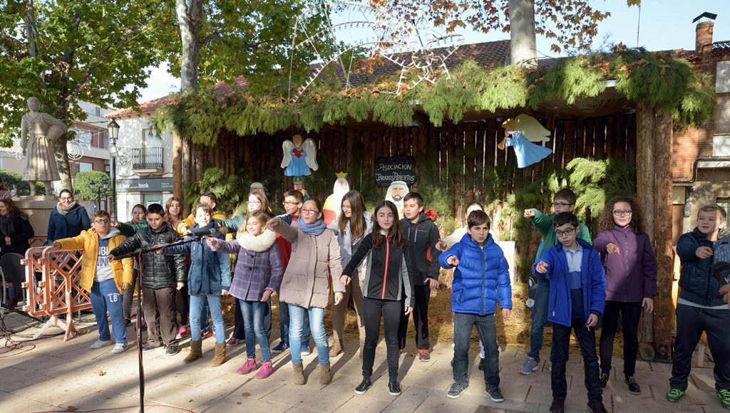Frente al portal de Belén instalado por la asociación en la Glorieta, se concentraron todos los centros educativos públicos de la localidad, desde la Escuela Infantil “Alba” hasta los más de setenta alumnos y alumnas del IES “Vicente Cano”, pasando por los CEIP Ntra. Sra. de Peñarroya, Azorín y Divino Maestro interpretando diferentes villancicos, tanto en castellano como en inglés.