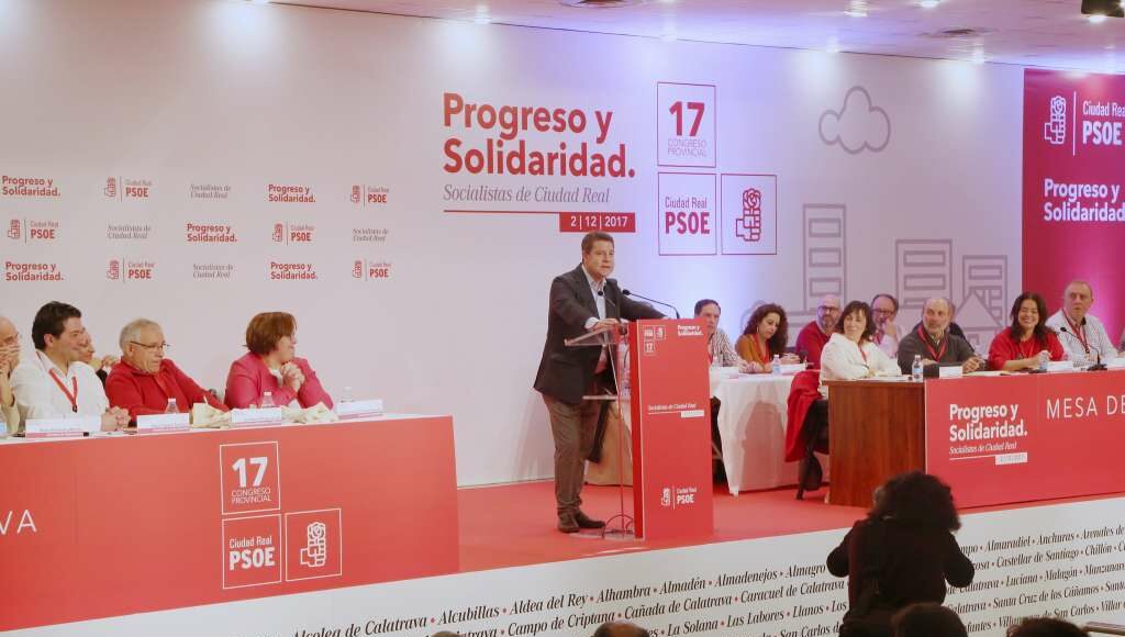 García-Page ha participado este sábado en la inauguración del 17 Congreso del PSOE de Ciudad Real, que reelegirá a José Manuel Caballero como secretario general y que será clausurado por el secretario federal de Organización, José Luis Abalos.