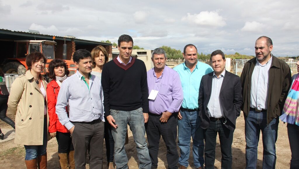 Acompañaron a Pedro Sánchez en su visita a esta granja los secretarios generales del PSOE de Castilla-La Mancha y de Ciudad Real, Emiliano García-Page y José Manuel Caballero, respectivamente, la secretaria de organización ciudadrealeña, Blanca Fernández, así como la secretaria general del PSOE de Alcázar de San Juan, Rosa Melchor; el alcalde de Herencia, Jesús Fernández Almoguera, o el secretario general de UPA Castilla-La Mancha, Julián Morcillo.