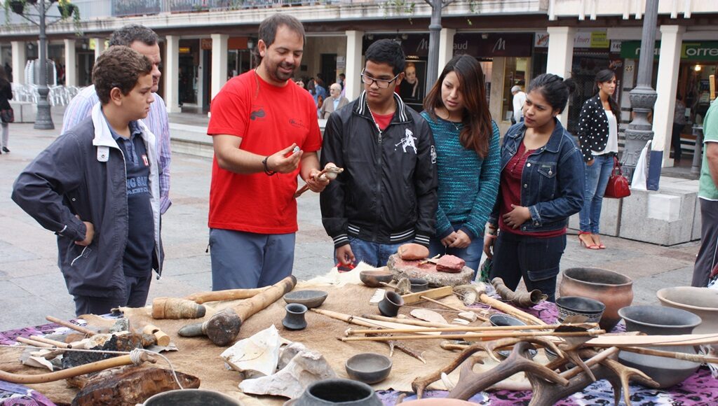 El arte esquemático de las cuevas prehistóricas de Fuencaliente ha tomado por unas horas el centro de Ciudad Real. Un taller didáctico pretendía mostrar a los más pequeños las técnicas de grabado en roca. Técnicas en las que el color predominante era el rojo y, por ello, éste ha sido el empleado para redecorar la mañana gris del sábado. Unos talleres en los que el centenar de niños participantes han descubierto de manera divertida cómo vivían nuestros antepasados a través de reproducciones de herramientas y materiales prehistóricos.