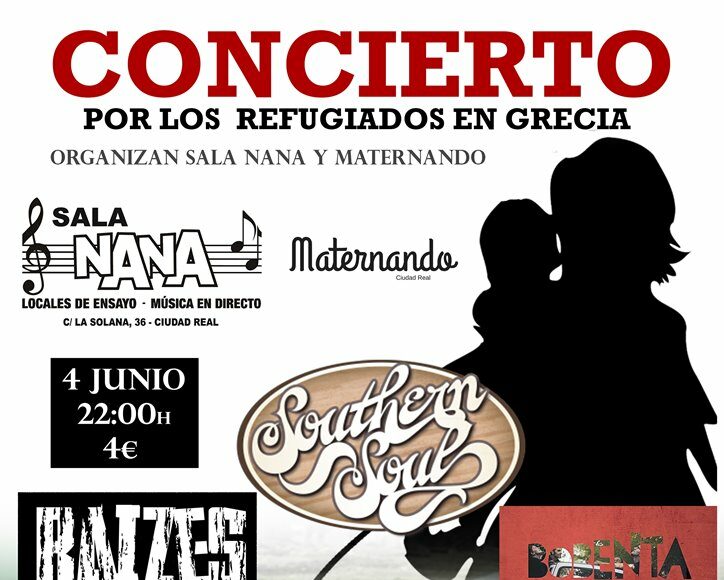 La recaudación íntegra por las entradas, más parte de la recaudación de las consumiciones en barra, se destinará a la compra de material en los campos de refugiados en Grecia. El evento está organizado por Maternando Ciudad Real en Idomeni, un grupo de madres reunidas para dotar de fondos a una ciudadrealeña que viajará a Grecia el 24 de junio para colaborar como voluntaria en los campos durante tres semanas. El dinero se utilizará para comprar productos de primera necesidad, tales como gorras, cremas solares, champús, geles, lociones antipiojos, pañales, etcétera. Por ello, es posible comprar entradas de fila cero (donaciones) en el número de cuenta ES08 2100 1698 1701 0012 5691 de La Caixa, poniendo en el concepto ‘fila cero refugiados’.