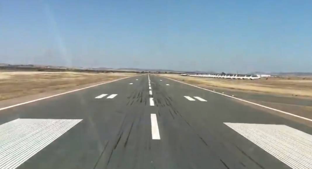 Uno de los pilotos del vuelo ha compartido en su cuenta de Twitter el aterrizaje en la pista del aeropuerto manchego, tras un vuelo de alrededor de media hora desde Barajas.
