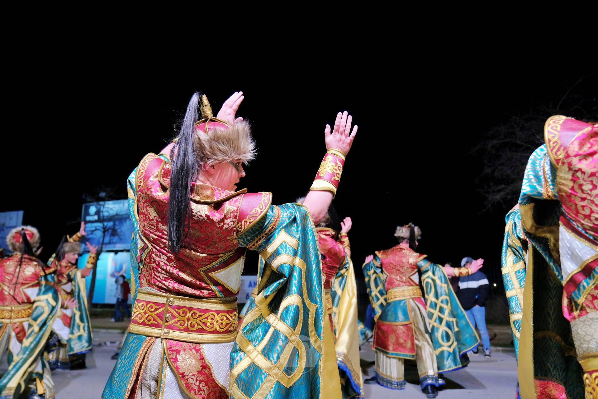 La propuesta ganadora en carrozas, “Mongolia: El Imperio del Cielo Azul”, ofreció un recorrido por la cultura, tradición y mitología del país asiático, con dragones, criaturas fantásticas, danzas tradicionales y guerreros, acompañados por cuatro espectaculares carrozas que incluían un caballo sagrado como símbolo de poder y compañerismo y grandes cabezas de dragón conectadas con la mitología oriental. Ritmo, fuerza y coreografías trepidantes marcaron su puesta en escena.