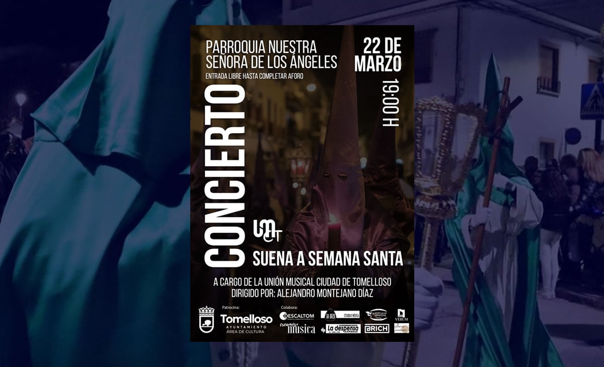 La parroquia de Nuestra Señora de los Ángeles acogerá el próximo 22 de marzo a las 19:00 horas el concierto “Suena a Semana Santa”, una propuesta musical que servirá como antesala a estas fechas tan señaladas y que correrá a cargo de la Unión Musical Ciudad de Tomelloso, dirigida por Alejandro Montejano Díaz.