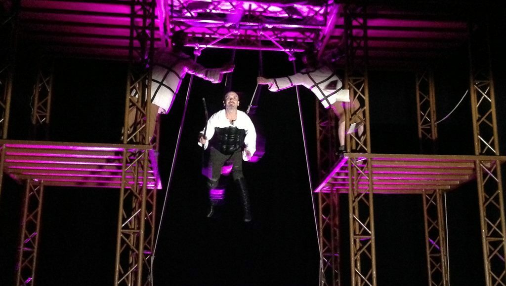 Este viernes, a las 22:00 horas, la Compañía de Teatro Narea representará en El Bonillo (Albacete) un espectáculo montado sobre una estructura metálica de tres niveles que cuenta con 6 metros de altura y 10 de diámetro, y que alberga los diferentes escenarios en los que se recrean las aventuras de Don Quijote, los encuentros con Dulcinea, la batalla contra los molinos de viento, el viaje a lomos de Clavileño, la lucha contra el Caballero de la Blanca Luna… y otras impresionantes escenas.